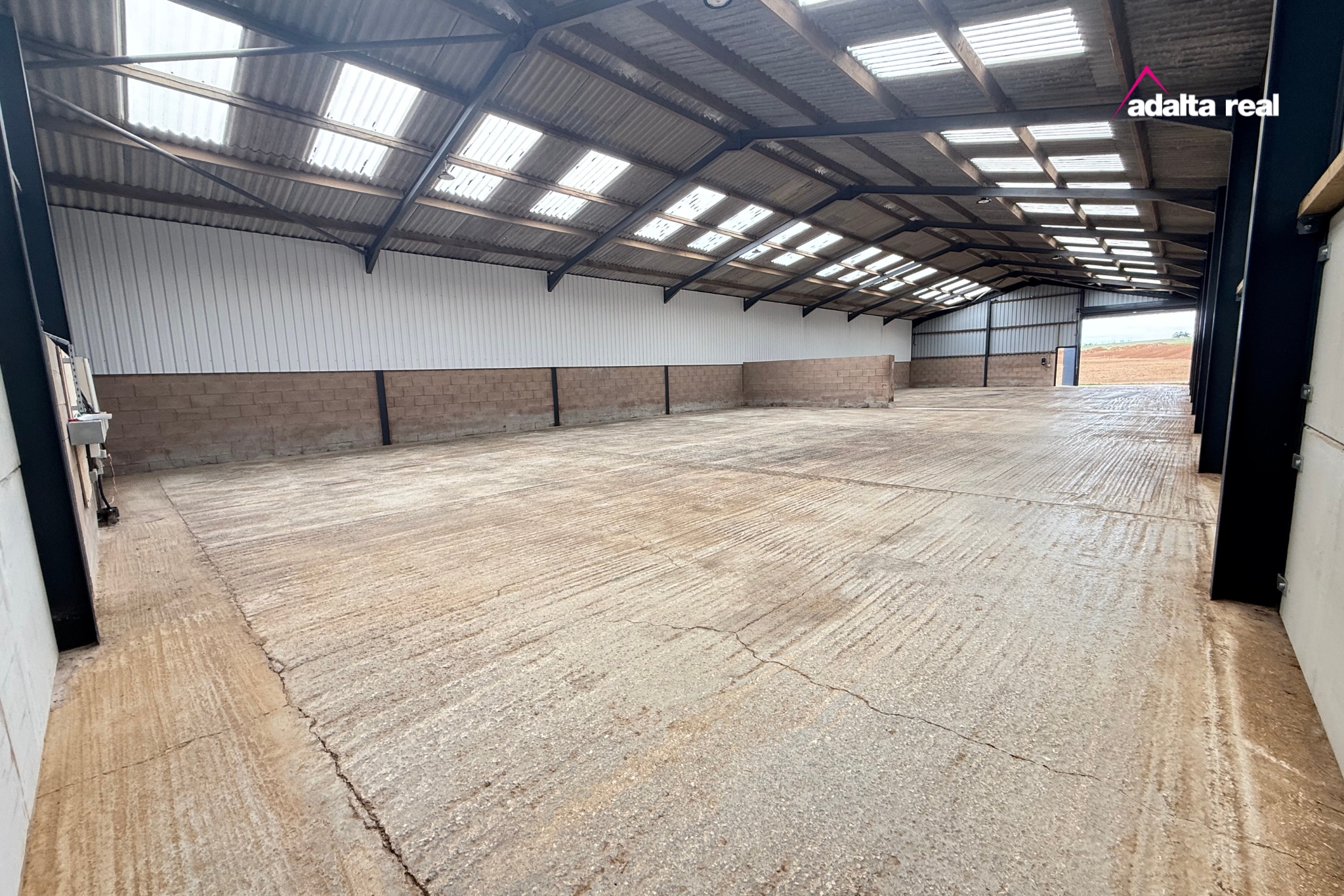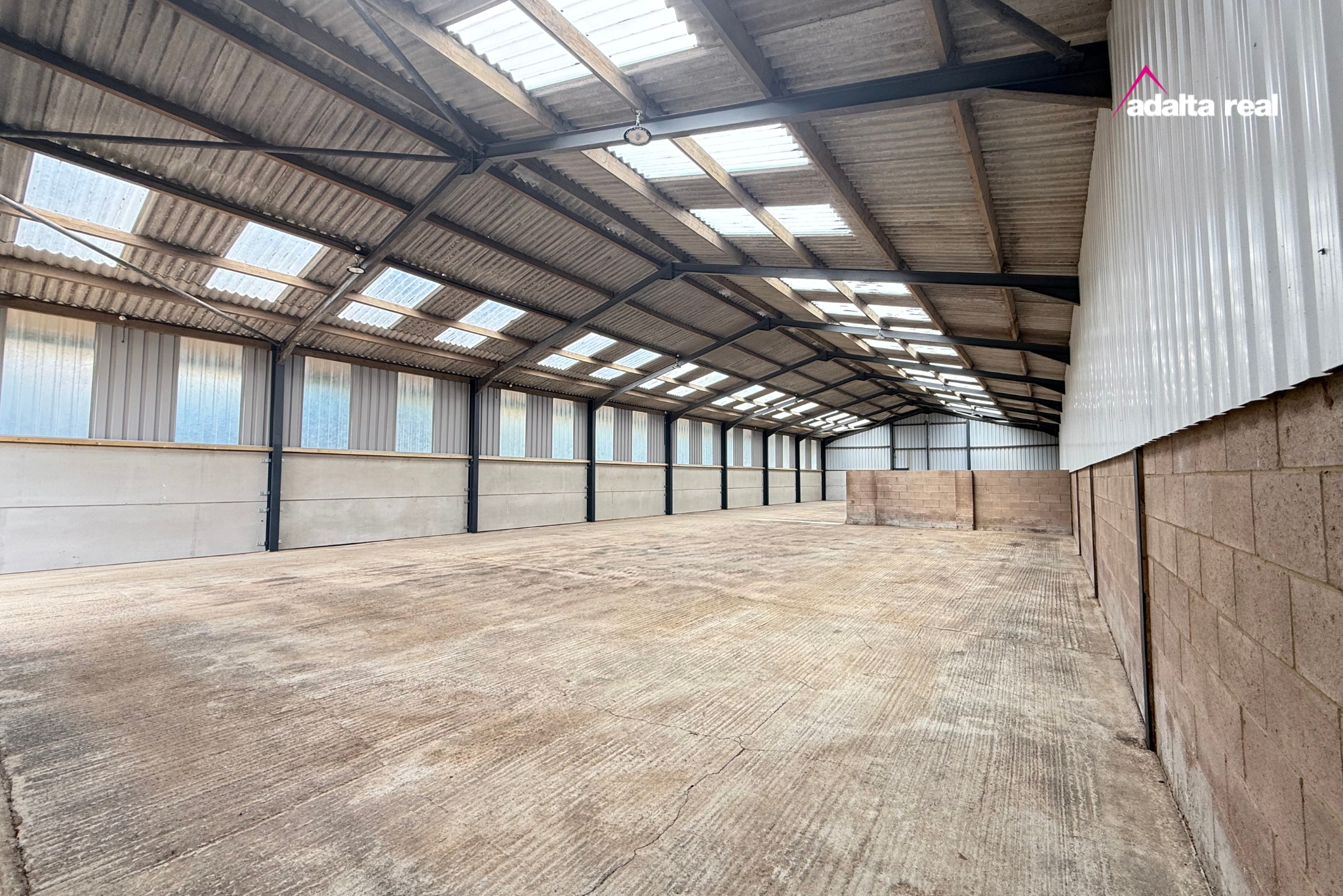 Modern, steel portal framed, profile clad insulated agricultural storage/workshop units with three phase electricity, water and full height roller shutter loading door.