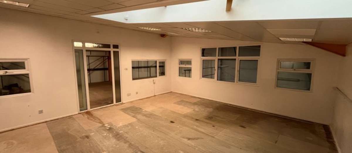 Internally, The Unit Is Configured To Provide An L-shaped Workshop Which Wraps Around A Single Storey Office Block Located To The Front Of The Property.