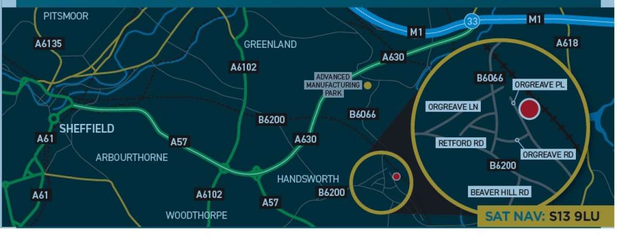 The property is situated to the north eastern side of Orgreave Place virtually opposite to Orgreave Road which provides access to Dorehouse Industrial Estate. Dorehouse Industrial Estate is located on the B6200 (Retford Road), a main arterial route to the eastern side of the City of Sheffield. Retford Road gives access to the A630 (Sheffield Parkway), approximately one mile away and Sheffield Parkway gives easy access to both Junction 33 of the M1 Motorway, which lies approximately three miles distant.